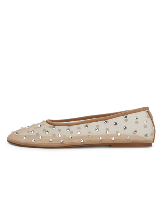 Nude Sparkle Rhinestone Strass Semi-Transparent Mesh Flats Slip-On Ballerinas