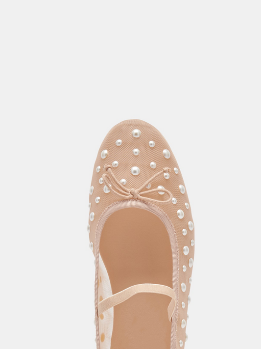 Blush Pink Bow Pearl Semi-Transparent Mesh Ballet Flats Mary Janes