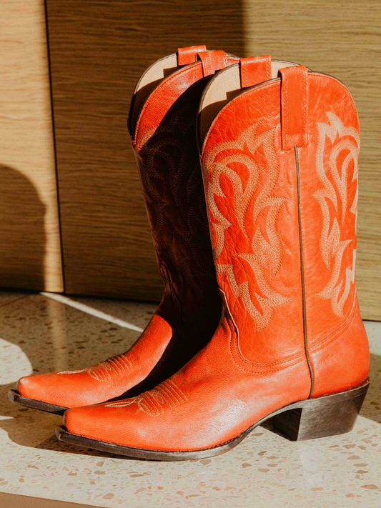 Caramel Snip-Toe Embroidery Tall Wide Mid Calf Cowgirl Boots