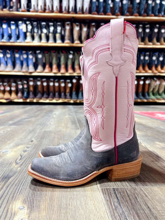 Contrast Ivory And Lilac Faux Suede Square-Toe Embroidery Wide Mid Calf Tall Cowgirl Boots