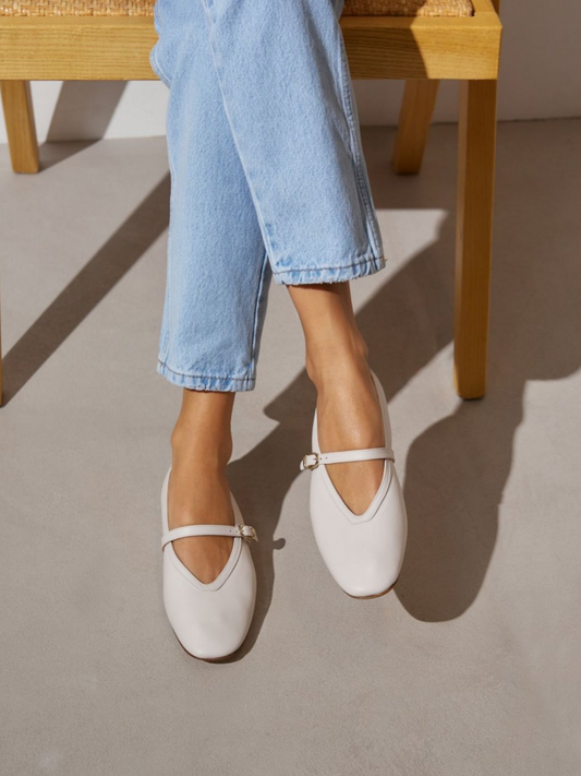 White Vegan Leather Square Toe Buckled Ballet Flats Mary Janes