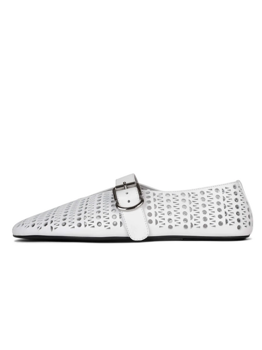 White Perforated Flats Cutout Mary Janes With Buckled Strap