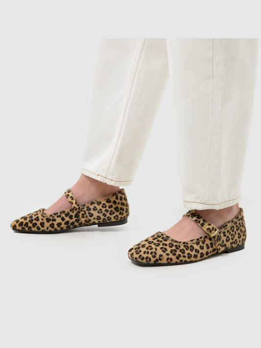 Leopard Faux Fur Square-Toe Bridge Strap Mary Janes Ballet Flats