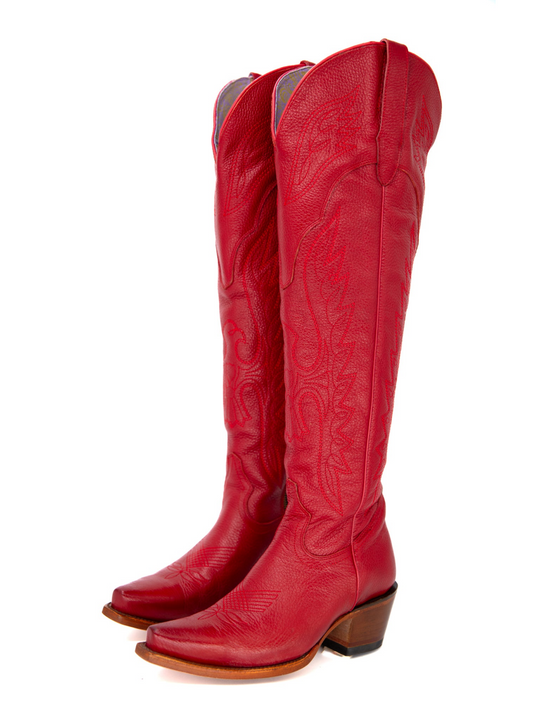 Eagle Embroidery Snip-Toe Half-Zip Over-The-Knee Tall Cowgirl Boots - Red