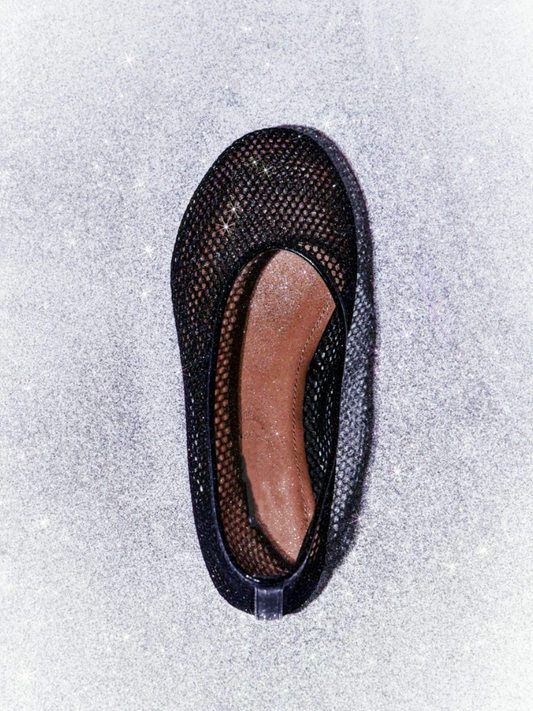 Fishnet Round-Toe Slip-On Ballet Flats in Black