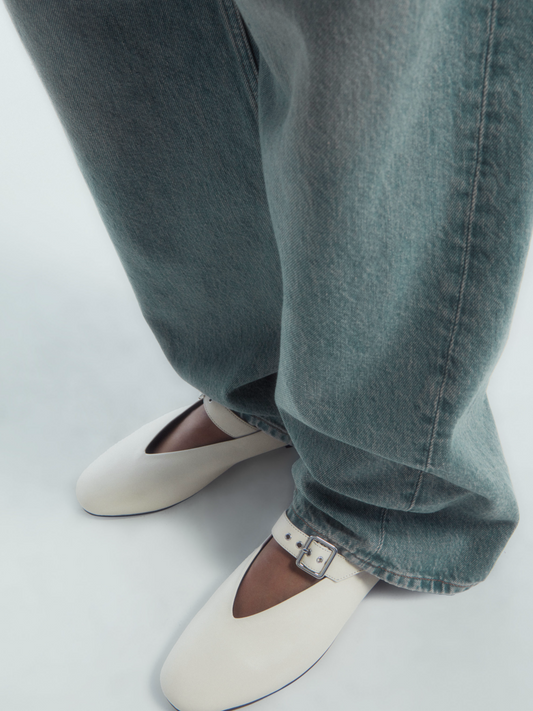 Ivory Round-Toe Bridge Buckle Mary Janes Ballet Flats