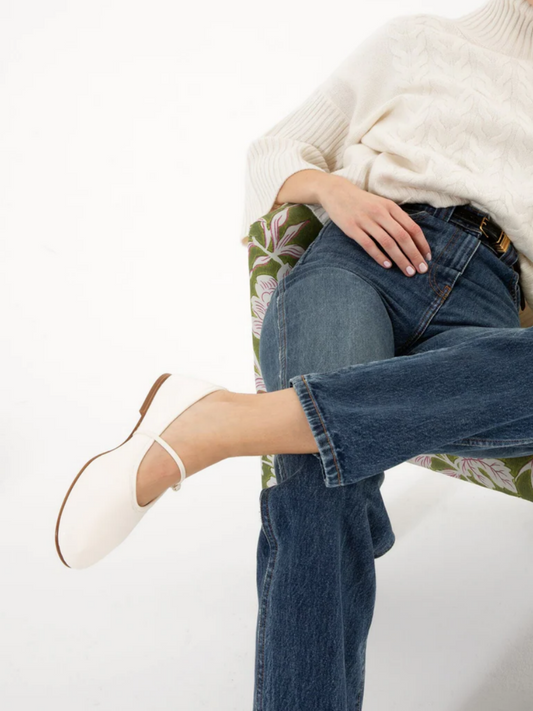 White Perforated Flats Cutout Mary Janes With Buckled Strap