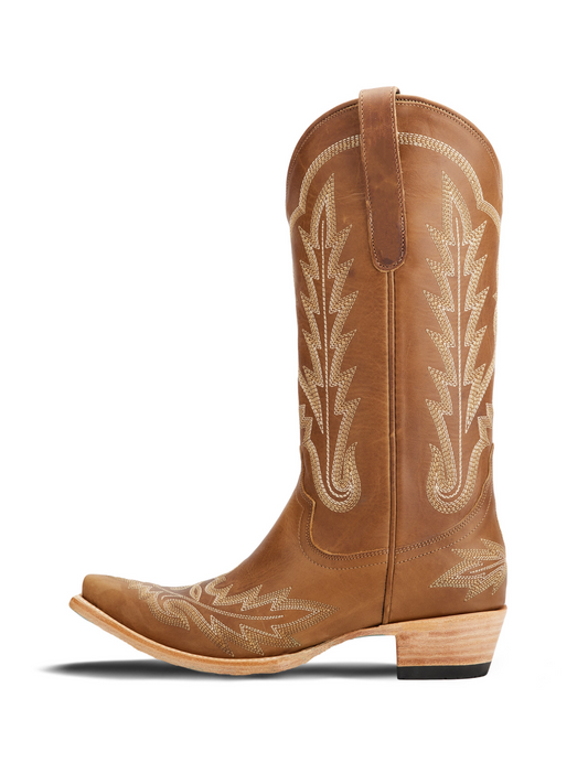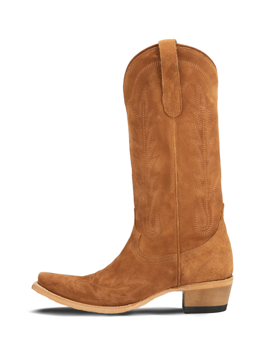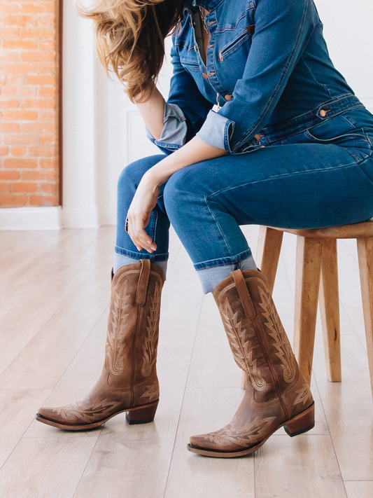 Western Snip-Toe Classic Embroidery Mid Calf Cowgirl Boots - Burnt Caramel