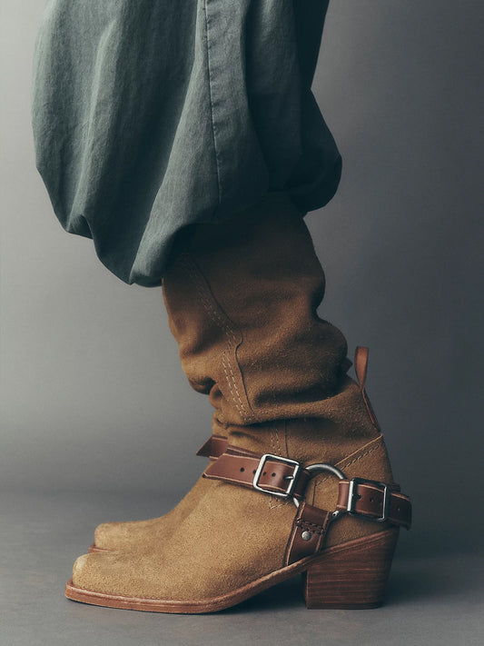 Beige Faux Suede Snip-Toe Embroidery Tall Wide Mid Calf Cowgirl Boots
