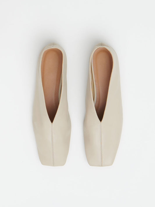 Bone Square-Toe V-Cut Vamp Simple Flats
