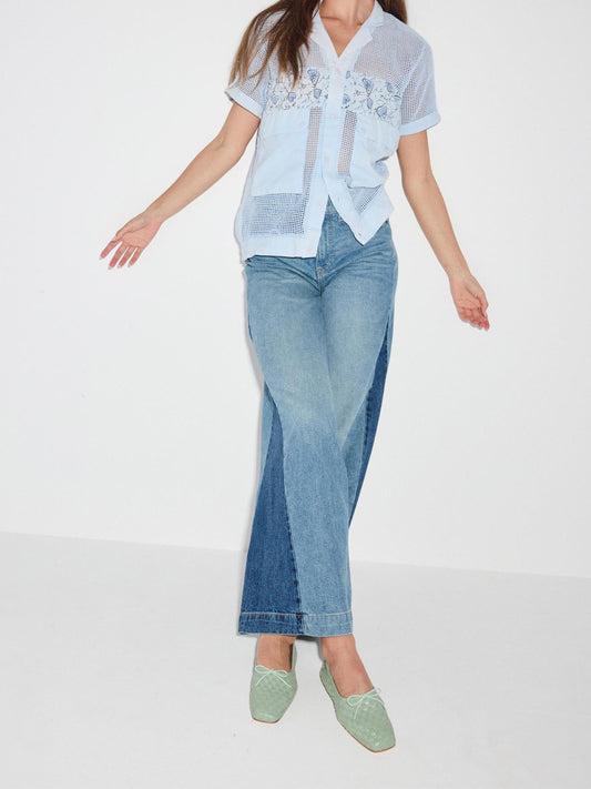 Vegan Leather Woven Square-Toe Bow Ballet Flats - Sky Blue