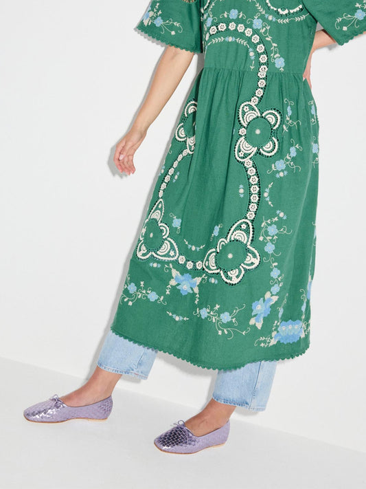 Vegan Leather Woven Square-Toe Bow Ballet Flats - Moss Green
