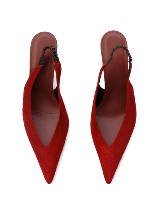 Red Pony Hair Vegan Leather Pointed-Toe Back Strap Kitten Heels