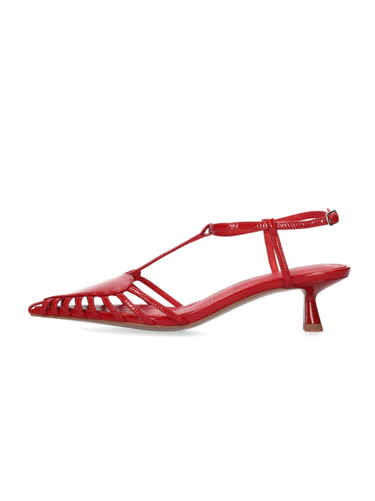 Patent Red Pointed-Toe Front Heart Design Ankle Strap Kitten Heels