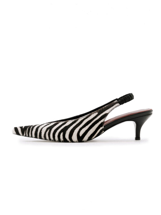 Zebra Print Pony Hair Vegan Leather Pointed-Toe Back Strap Kitten Heels