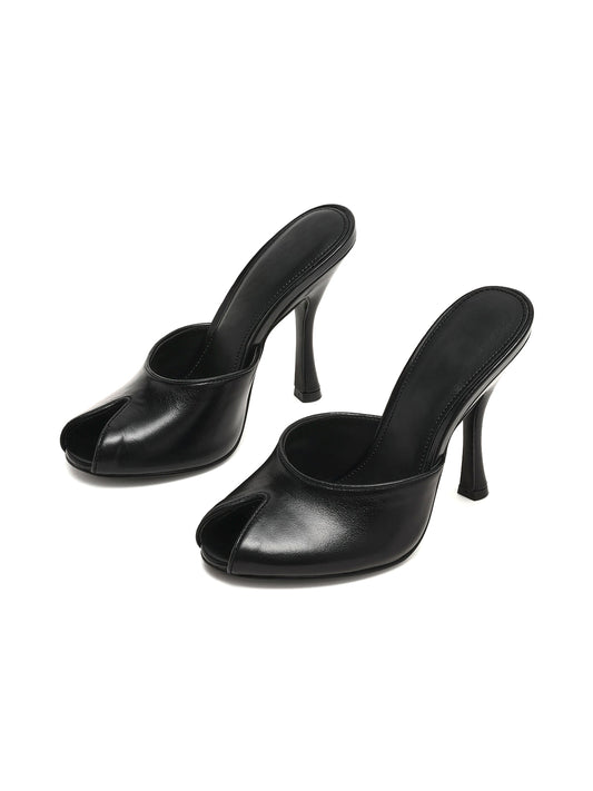 Black Peep Round-Toe Slip-On Backless Mules High Heels