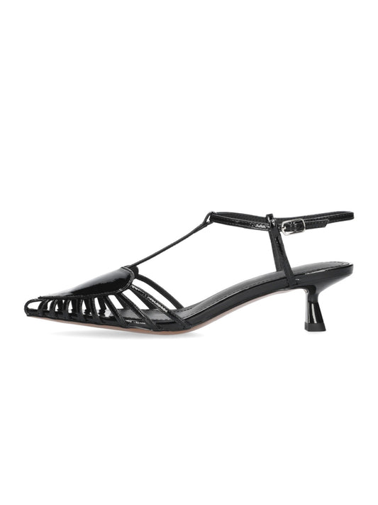 Patent Black Pointed-Toe Front Heart Design Ankle Strap Kitten Heels