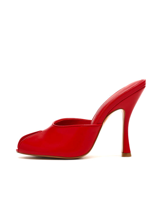 Red Peep Round-Toe Slip-On Backless Mules High Heels