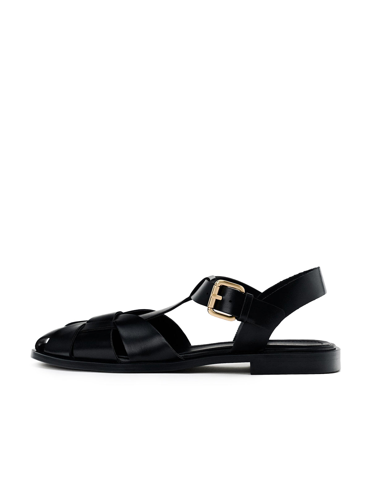 Black Round-Toe Ankle Strap Fisherman Sandals