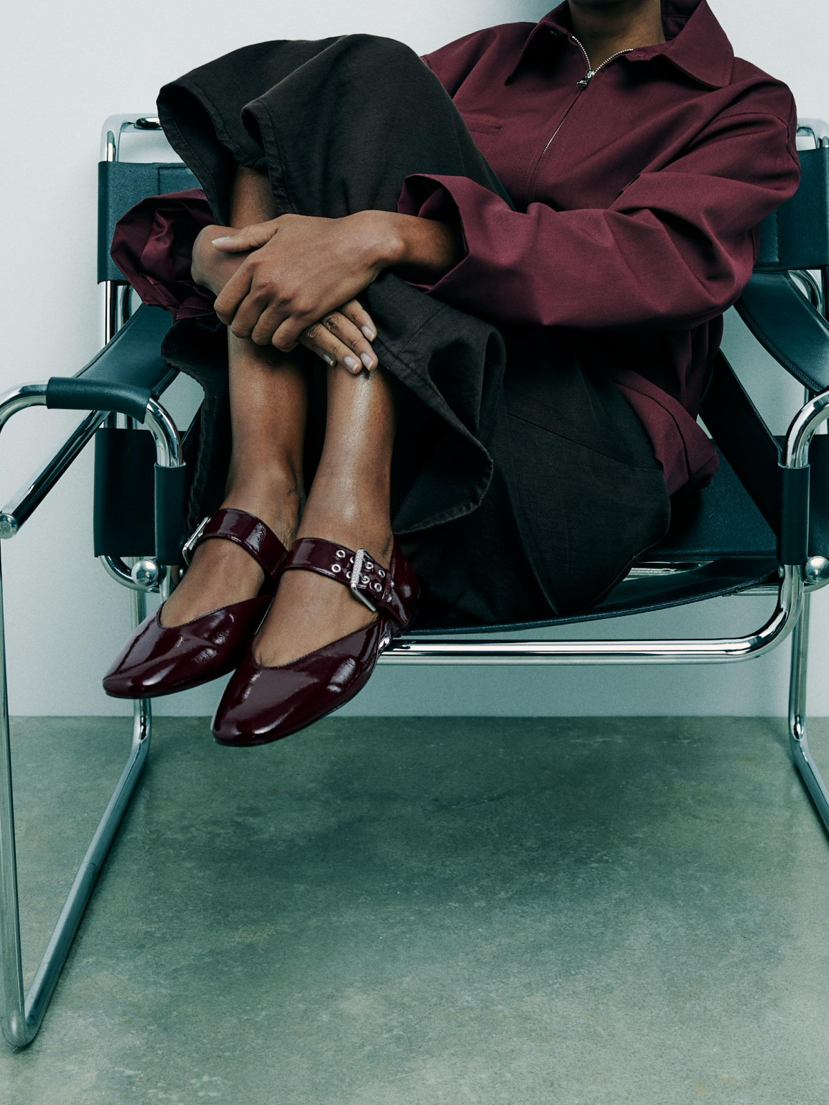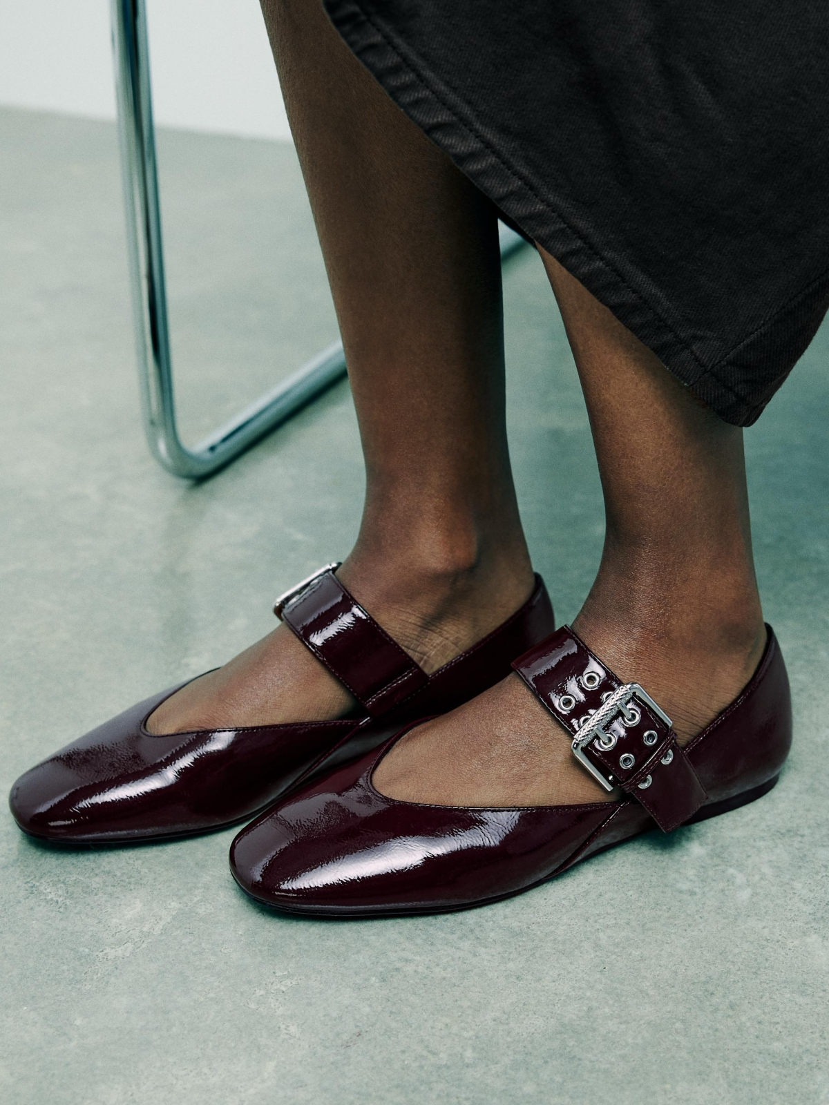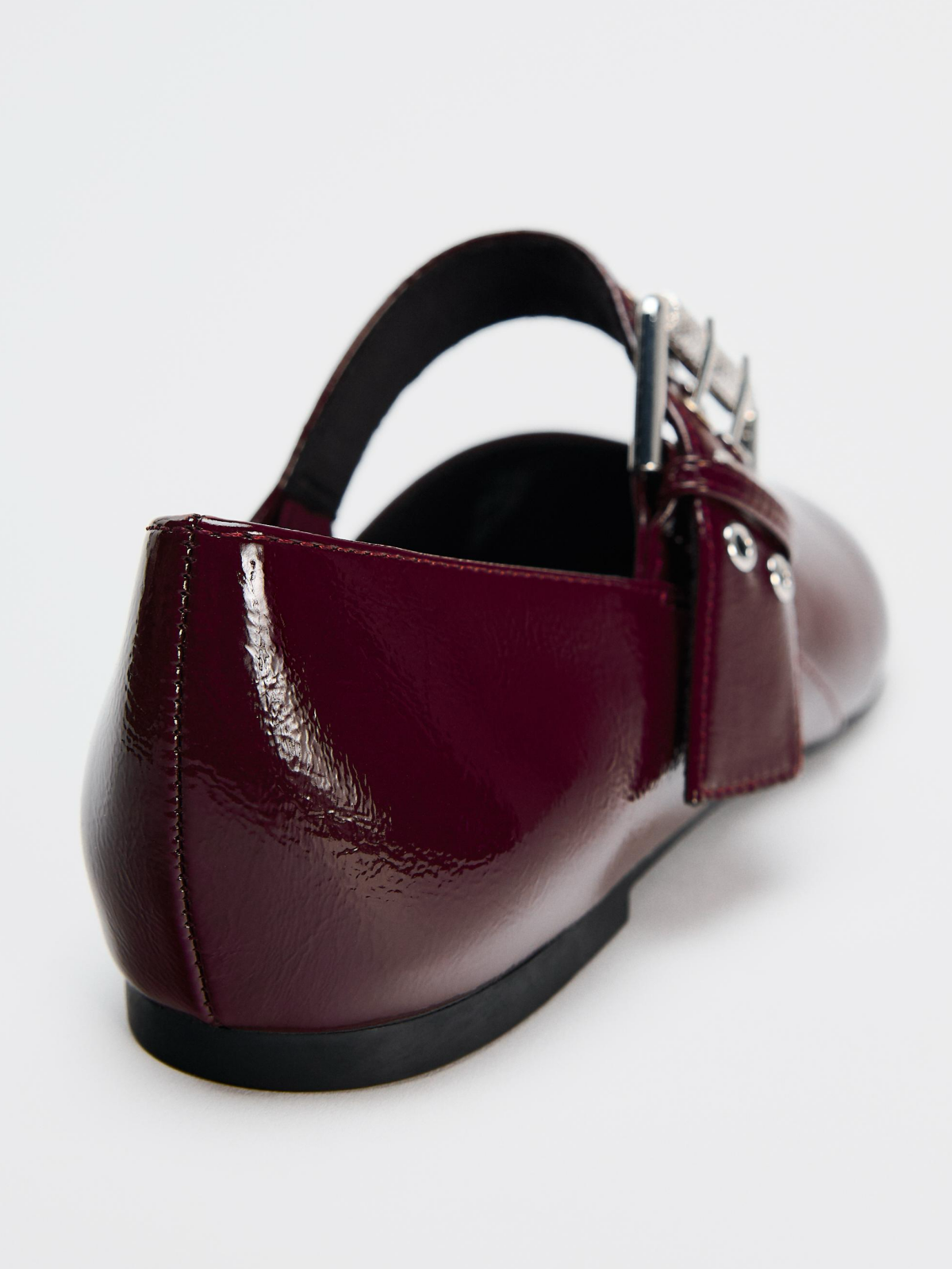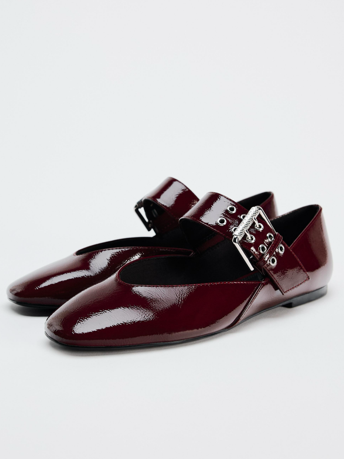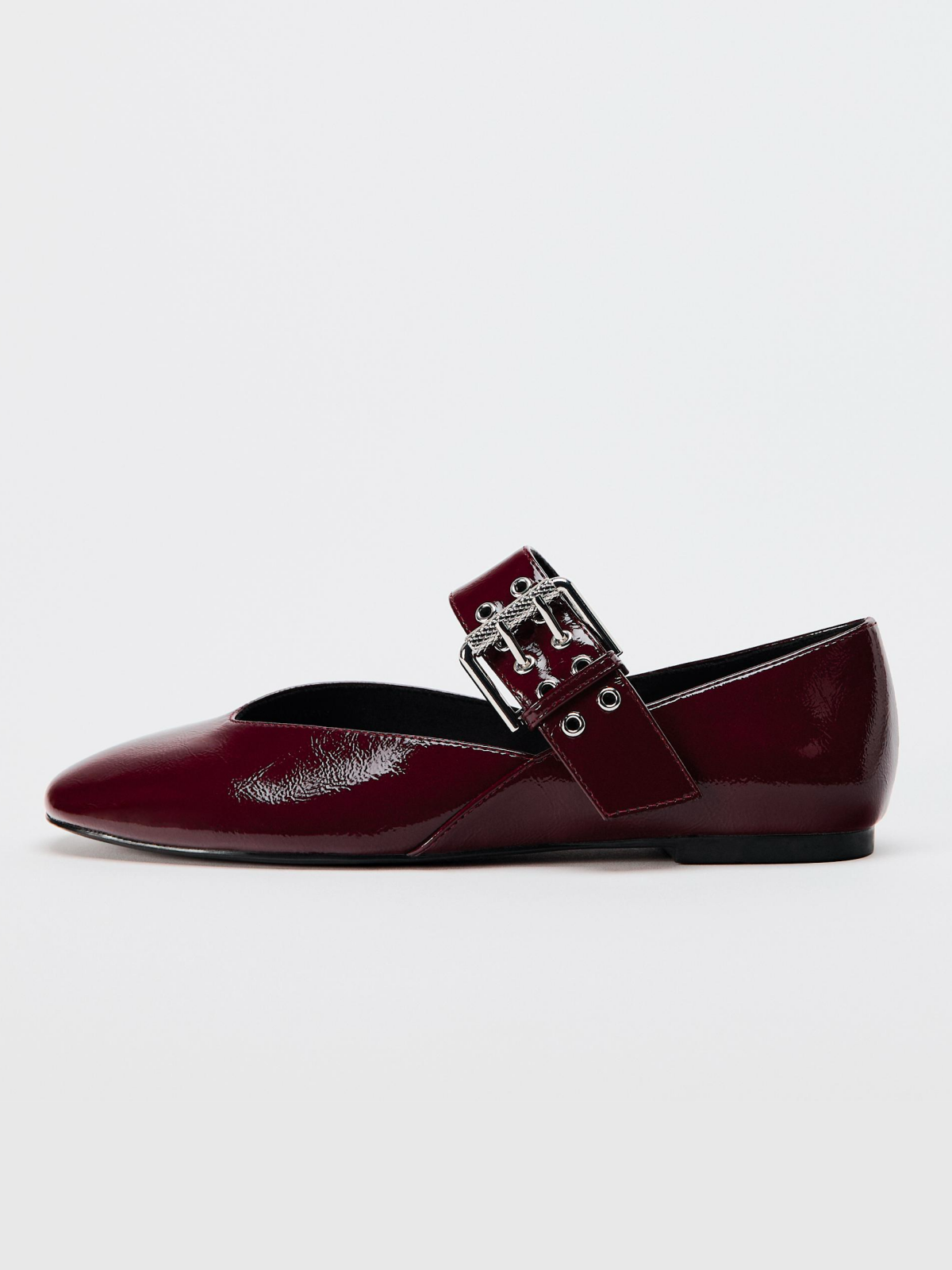 Patent Burgundy Square-Toe Wide Strap With Buckle Mary Janes Ballet Flats