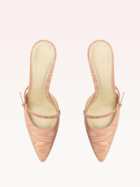Beige Pointy Slingback Stiletto Pumps with Buckled Strap