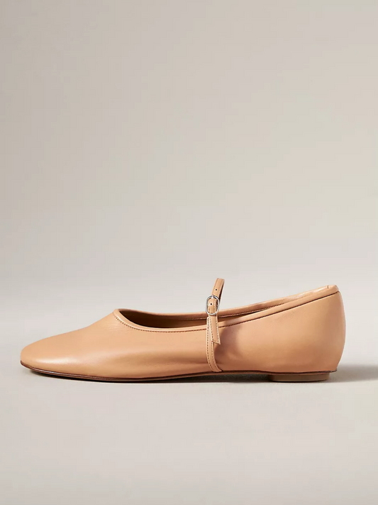 Beige Round-Toe Flats Mary Janes With Thin Buckled Strap