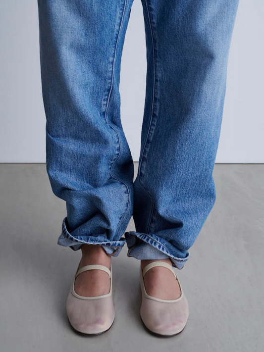 Beige Semi-Sheer Mesh Ballet Flats Mary Janes With Round Toe