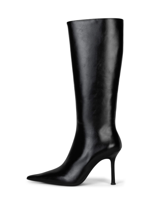 Black Full-Zip Pointed-Toe Mid Calf Stiletto Boots