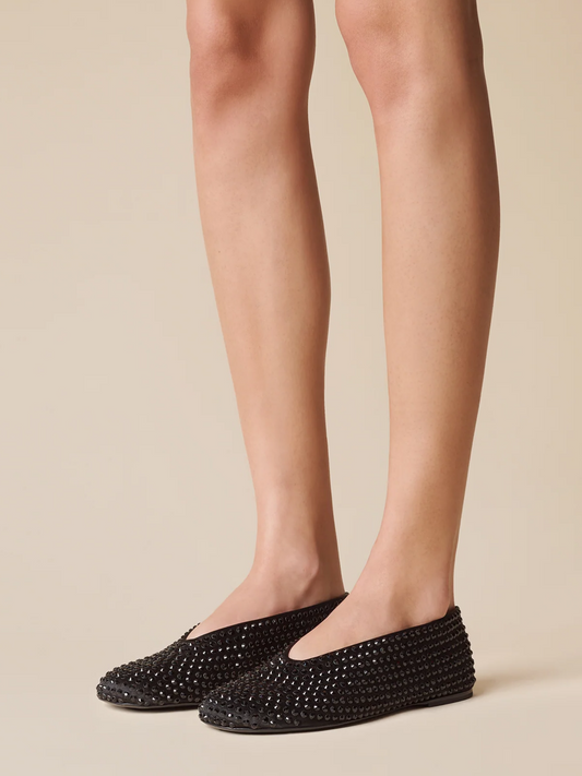 Black Full-Embellished Rhinestones Round-Toe Strass Ballet Flats