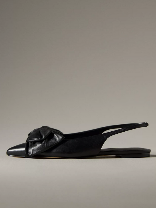 Black Pointed-Toe Bow Slingback Pump Kitten Heels