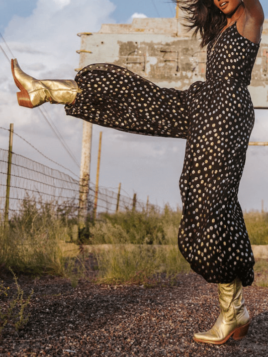 Snip-Toe Wide Mid Calf Cowgirl Boots - Metallic Gold