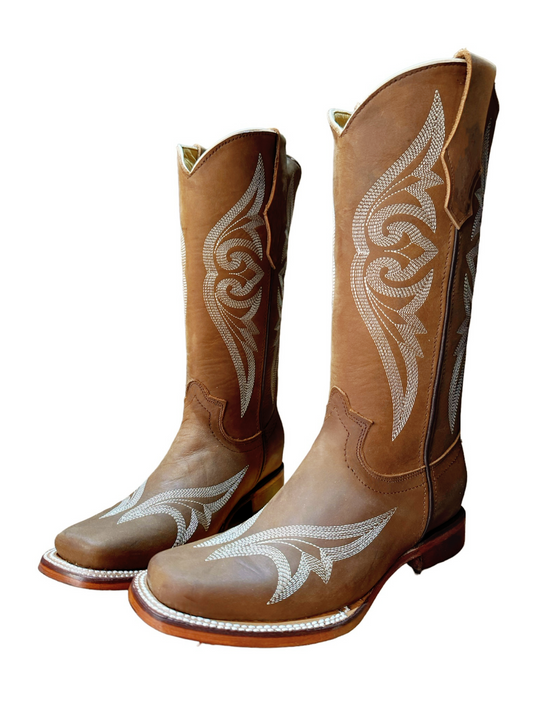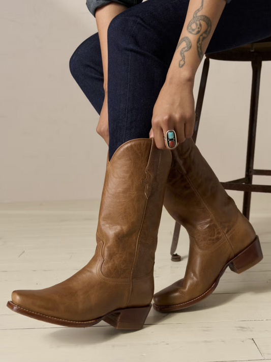 Tan Square-Toe Western Wide Mid Calf Cowgirl Boots
