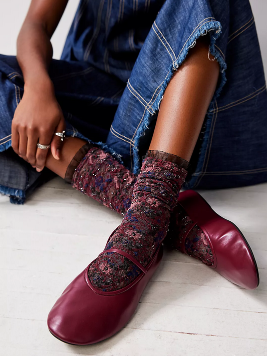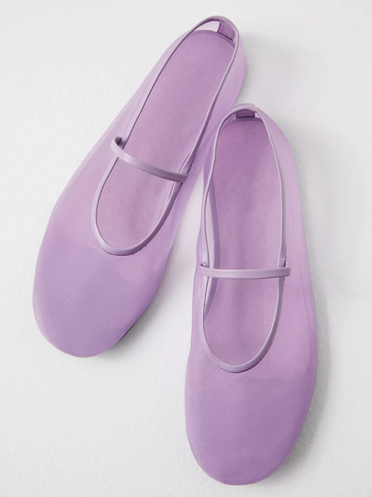 Light Blue Mesh Ballet Vegan Leather Round-Toe Vamp Strap Flats