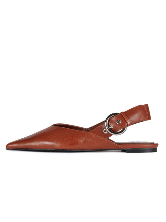Brown Pointed-Toe Slingback Flats