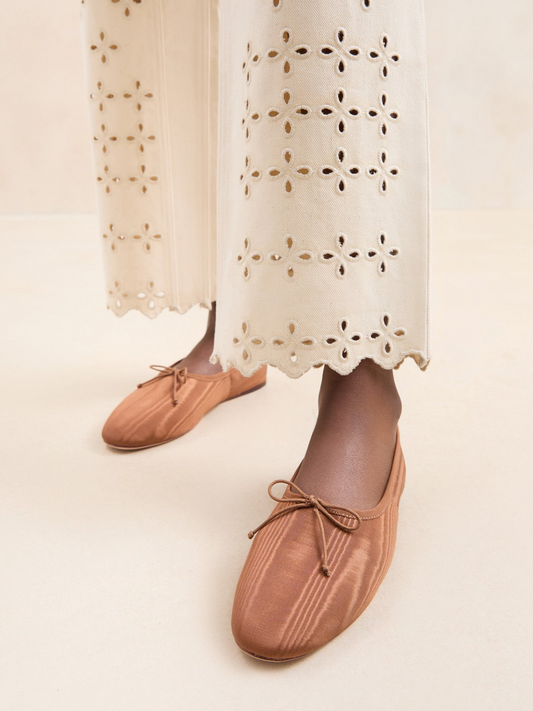 Brown Fabric Almond-Toe Ballet Bow Flats
