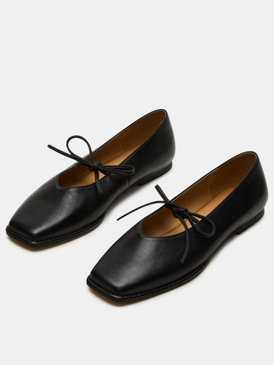 Black Square-Toe Bow Mary Janes Ballet Flats