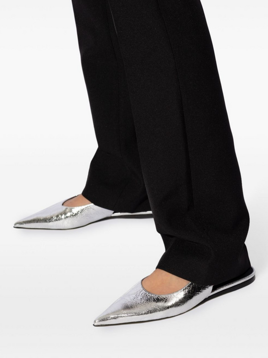 Metallic Silver Crinkle Pointed-Toe Ballet Flats Slingbacks