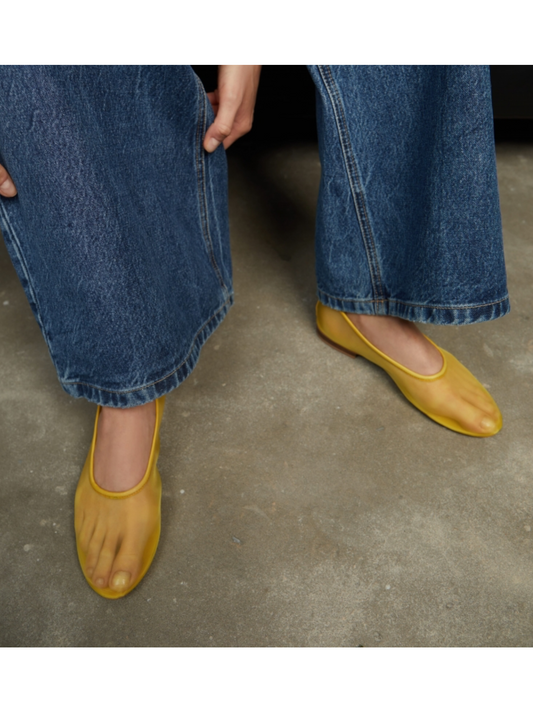 Round-Toe Slip-On Ballet Flats in Yellow Mesh