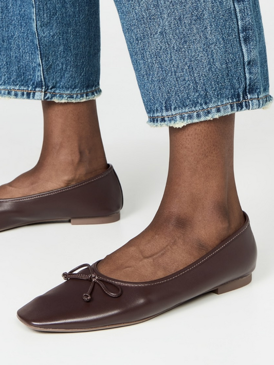 Chocolate Bow Square-Toe Slip-On Ballet Flats