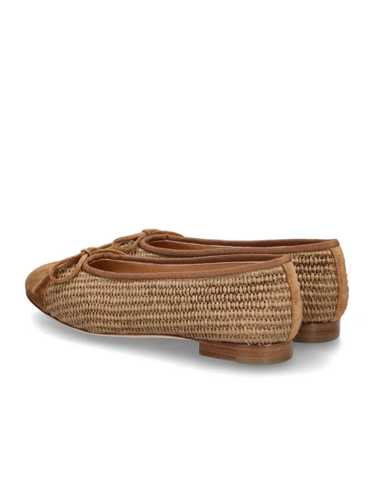 Brown Bow Raffia Ballet Flats With Faux Suede Round-Toe