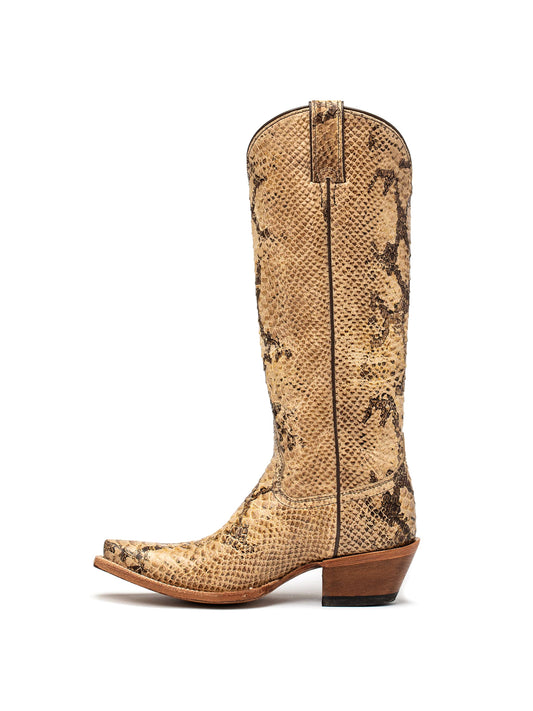 Natural Snakeskin Print Snip-Toe Sleek Wide Calf Knee High Cowgirl Boots