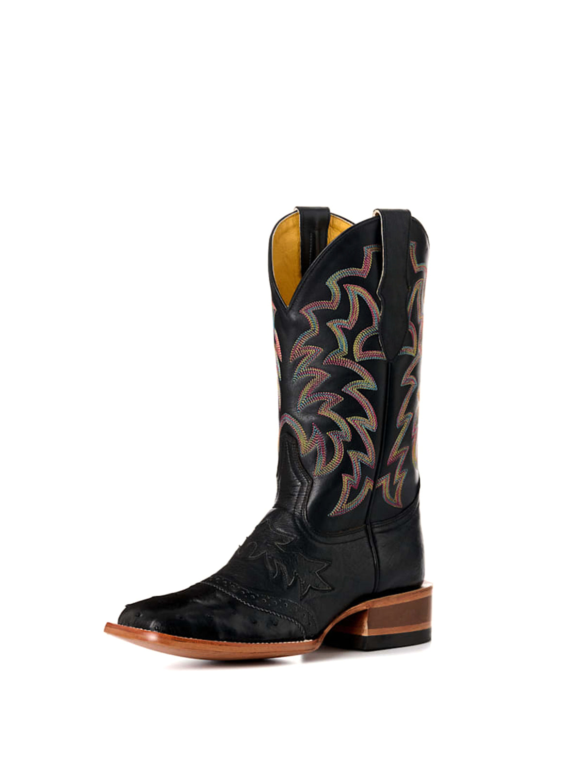 Bold and distinctive, these boots feature a structured square-toe silhouette accented with rich color contrast and textured ostrich print. Intricate Western embroidery adds refined depth and artisanal character across the shaft, while the mid-calf height creates a balanced, versatile profile. Striking yet classic, they’re perfect for Western-inspired outfits, festivals, or confident everyday statement styling.