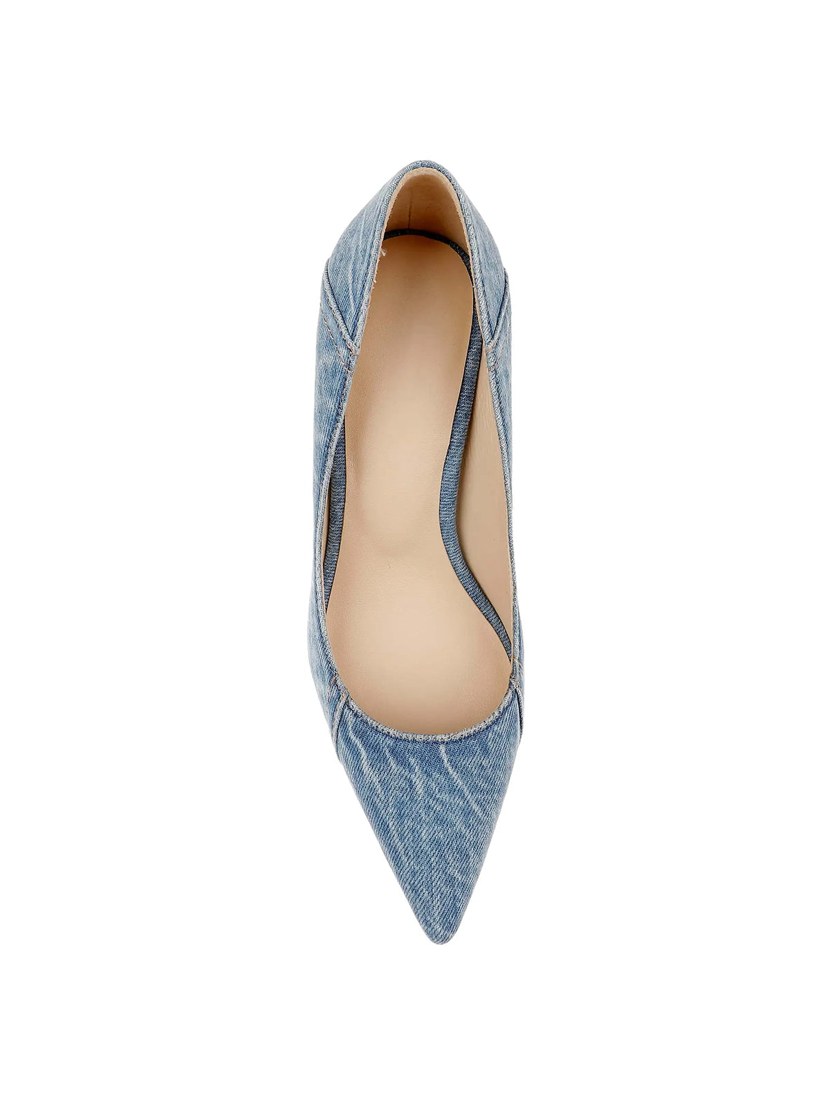 Blue Denim Pointed-Toe Slip-On Backless Pumps