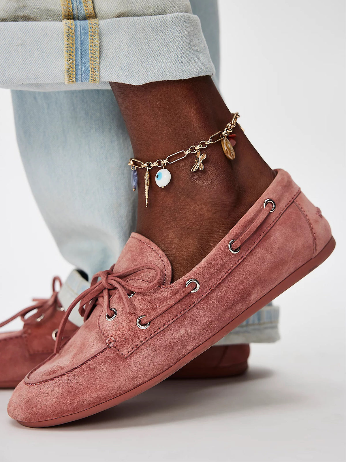 Distressed Pink Faux Suede Round-Toe Lace-Up Boat Shoes Flats