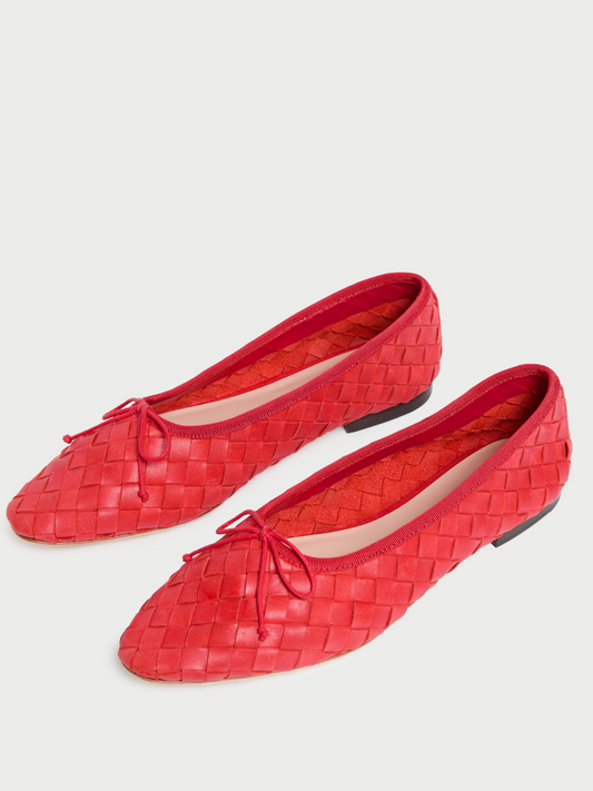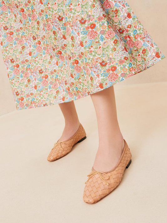 Chocolate Almond-Toe Bow Woven Ballet Flats