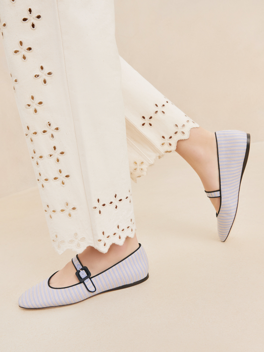 Light Blue Cloth Square-Toe Adjustable Bridge Strap Mary Janes Ballet Flats