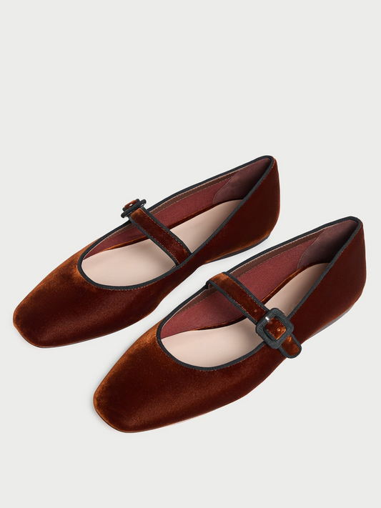 Sienna Velvet Square-Toe Adjustable Bridge Strap Mary Janes Ballet Flats