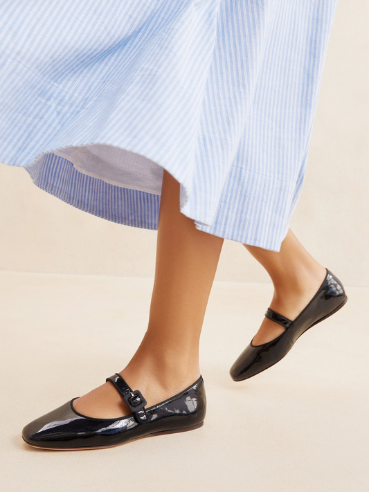 Patent Black Square-Toe Adjustable Bridge Strap Mary Janes Ballet Flats