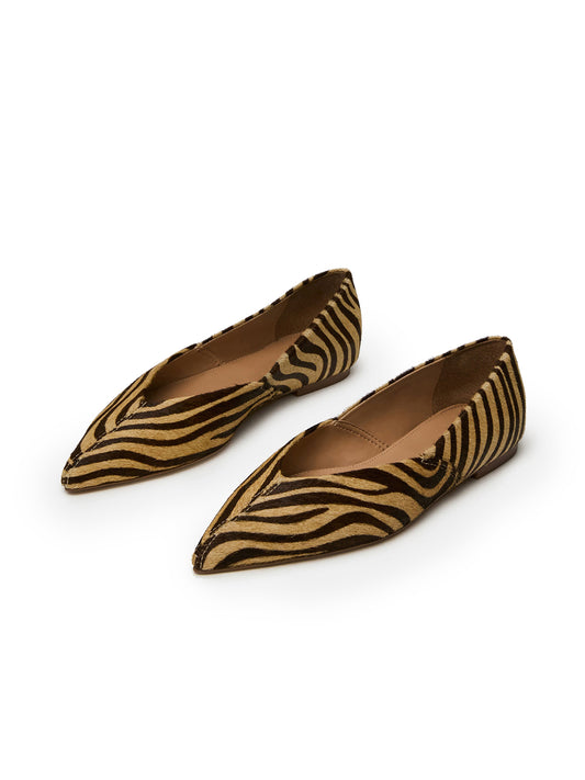 Zebra Print Pointed-Toe Slip-On Simple Chic Flats