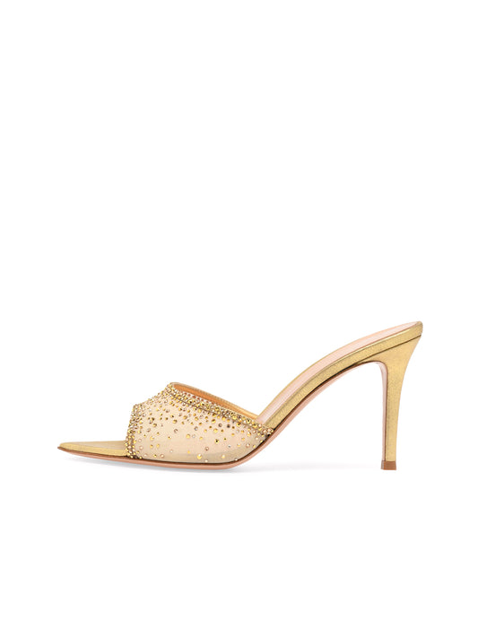 Rhinestones Mesh Open Pointed-Toe Backless Slip-On High Heels – Metallic Gold